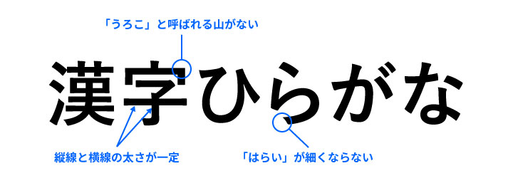 また、和文フォントのゴシック体と同様、縦横の線の太さもほぼ均等です。