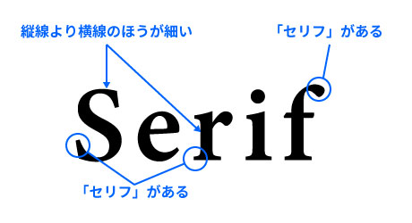 和文フォントの明朝体と同様、縦横の線幅が異なりセリフがあるのが特徴になります。